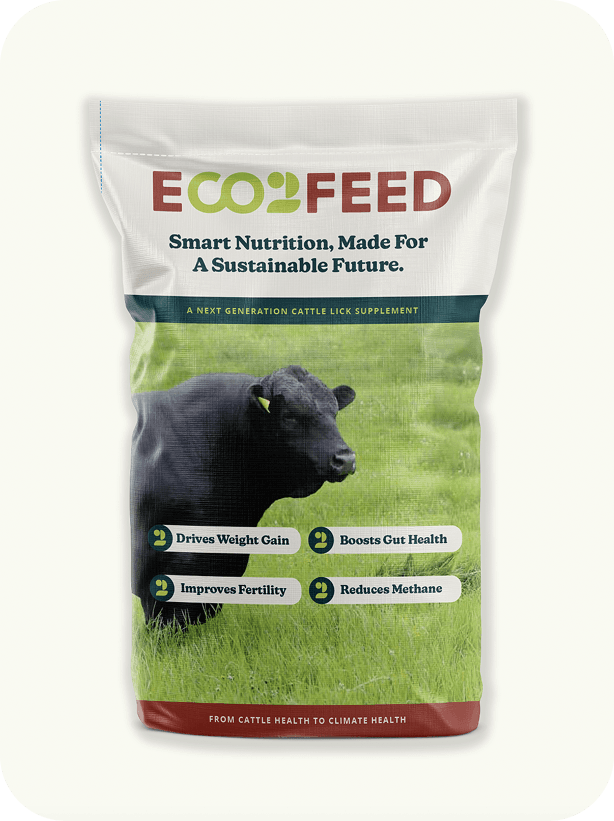 Eco2feed is a next-generation cattle lick supplement that boosts profitability through improved animal health, increasing fertility, driving weight gain, all while helping producers reduce their methane emissions.